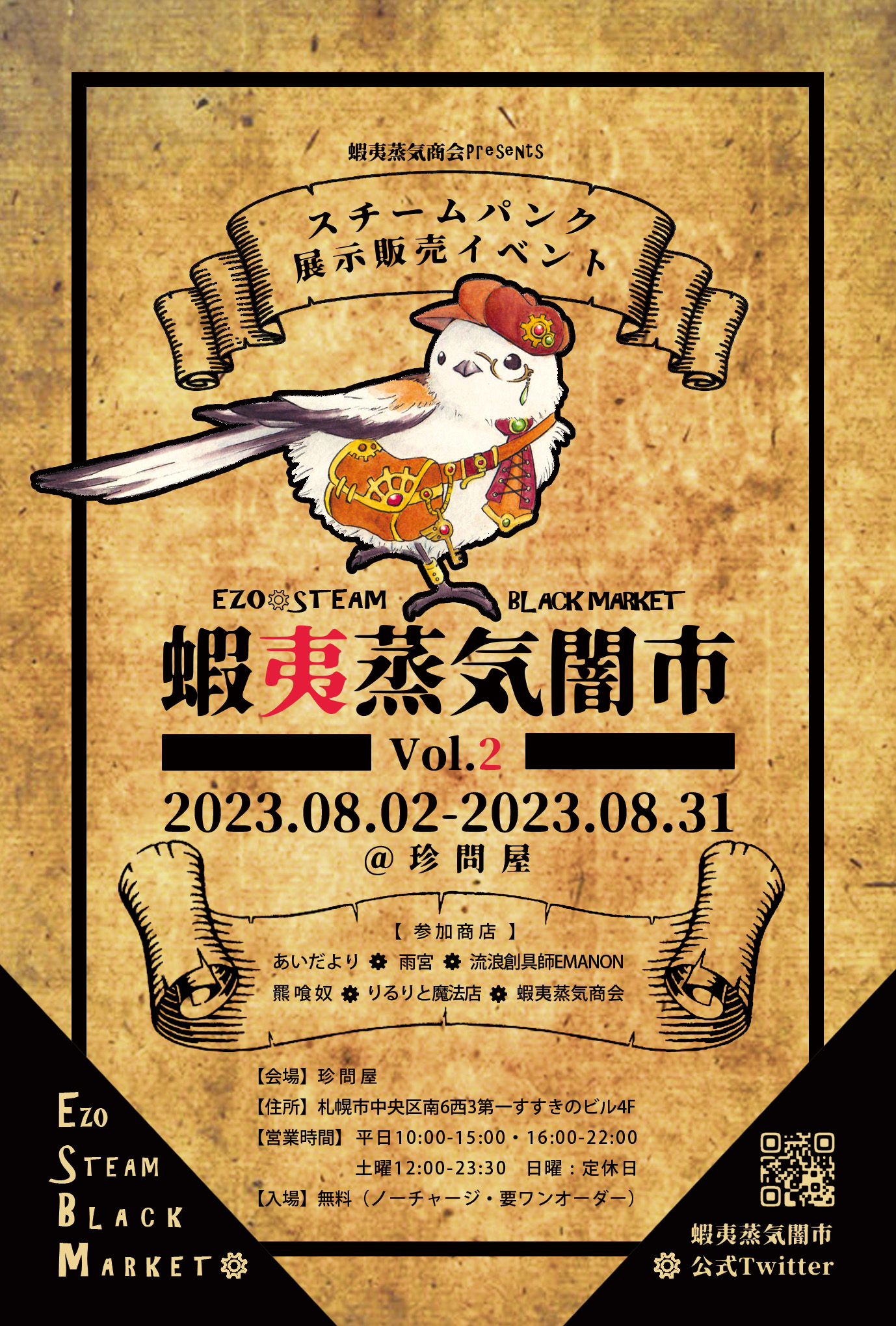 今回は委託参加となります。『蝦夷蒸気闇市Vol.2』に出店致します。